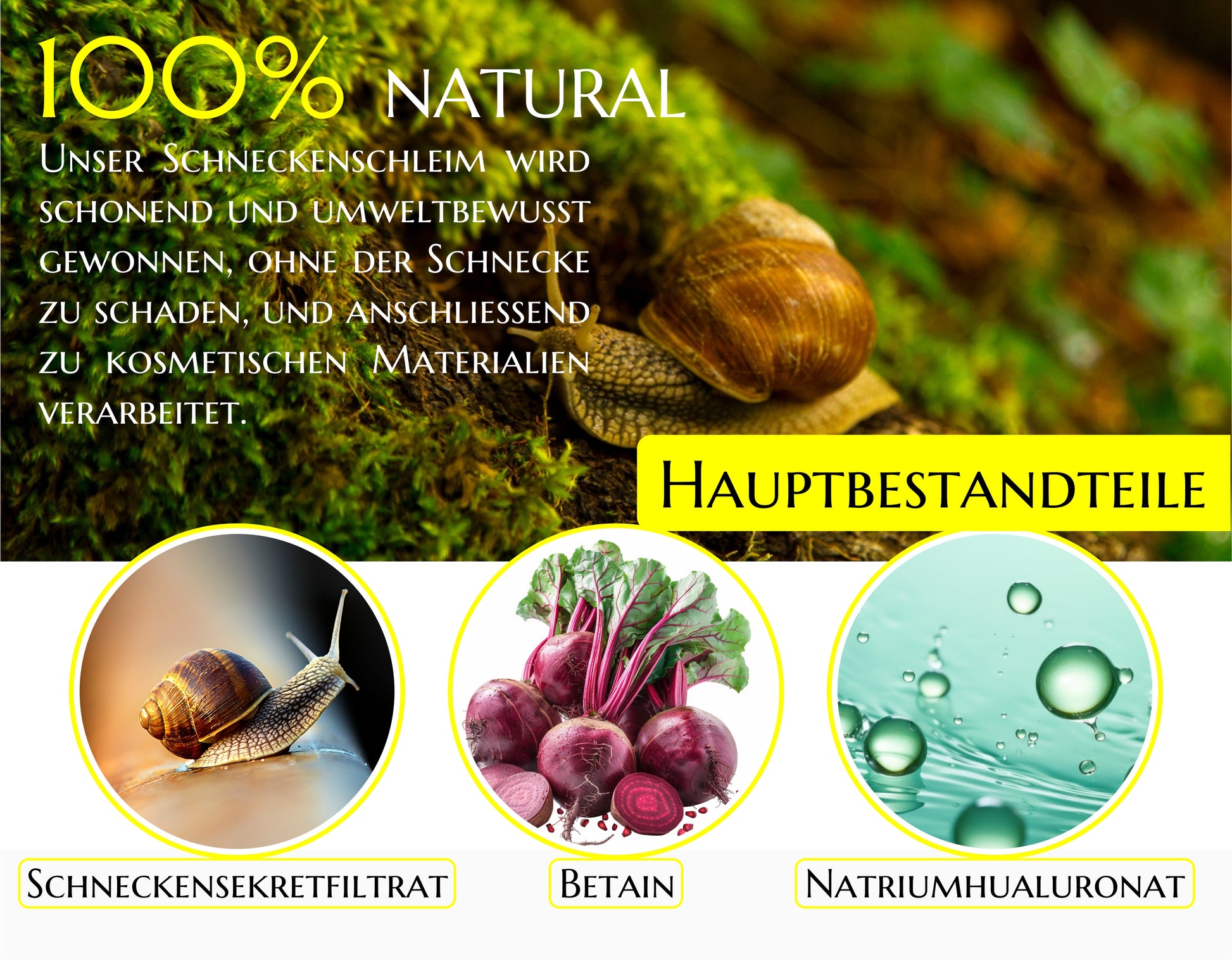 Das Snail 92 - Glow Serum enthält einen hohen Anteil an Schneckenfiltrat, das reich an Glycoproteinen und natürlichen Peptiden ist, die die Haut stärken. Weitere Schlüsselbestandteile sind: